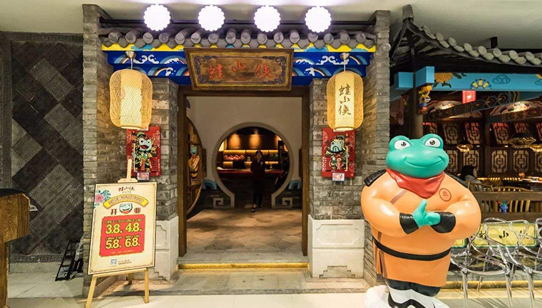 整個門店存在和互動的IP形象打造,就餐環(huán)境更為舒適(社交需求),蛙小俠就專注在這方面,以武俠IP植入,形成了個性化的空間藝術,只是這個武俠IP缺乏獨創(chuàng)性,是抄襲功夫熊貓的,不會持久;