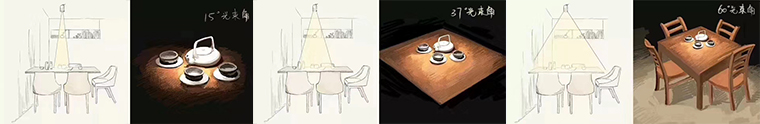 5、材質(zhì)、光束角度、光源色彩等靈活應(yīng)用。材質(zhì)不同,其中透明度、反射率、折射率、發(fā)光度等都不同。不同方向的燈光照射在同一物體上,表現(xiàn)出來的光澤和肌理也是不一樣,靈活駕馭光線的特點(diǎn),可以讓餐廳墻面或者物體及軟裝陳設(shè)品產(chǎn)生豐富的光暈和肌理的變化。同一個光源,扣上不同型號的燈杯后,它可以產(chǎn)生大小不一的光斑,如果我們從燈體發(fā)散一條射線到達(dá)光斑邊緣,線與燈之間形成的角度就是光束角。相同功率的燈杯,光束角越大,中心光強(qiáng)越小,發(fā)散出的光斑越柔和;相反,光束角越小,中心光強(qiáng)越大,發(fā)散出的光斑越生硬。不同光束角打在墻上的光斑大小是不一樣的,一般20度以下的叫窄光束角,20~40度叫中光束角,40度以上叫寬光束角。在品深餐飲空間設(shè)計(jì)中,一般中餐廳的照明使用的光速角在37度,用光線可以覆蓋整個餐桌;而咖啡館喜歡用15度的光速角,光源聚焦在咖啡杯。