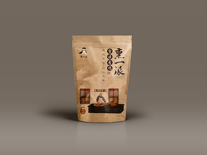 李總一開始將此香雞的做法和南方一樣,稱為燒雞。經(jīng)過我們實地考察,試吃。其實這是典型的熏雞做法。整只雞經(jīng)過長達10個小時的鹵煮,味道已經(jīng)進入到雞肉中,瀝干水后再用冰糖熏烤,色澤紅亮,極富嚼勁。于是,我們將此香雞命名為“熏一派”,在品牌命名中直接將此雞的做法亮出來,一方面可以讓顧客一目了然,知道我們的香雞特點;另一方面極大的降低傳播成本。且熏一派三個字簡單易懂,讀音平仄起伏,鏗鏘有力;派還有自成一派,門派之說,更表明我們立志做好的決心。
