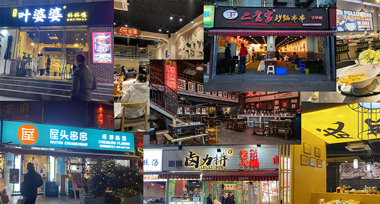 在成都,品深團(tuán)隊(duì)先后實(shí)地走訪了鋼管廠五區(qū)小郡肝、花嘴巴、馬路邊邊、洪七公、九街淑芬、二當(dāng)家等知名的串串火鍋。為了更好的感受串串火鍋現(xiàn)場消費(fèi)特點(diǎn),我們特意選擇周日餐飲旺時(shí),周一餐飲閑時(shí)在門店蹲守觀察。