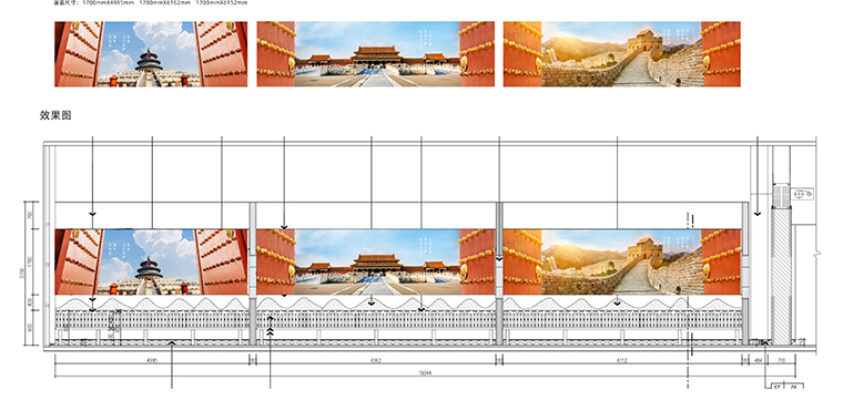 空間墻面中,我們使用了大量的軟膜燈箱,將北京故宮的高精度畫面進(jìn)行展示,讓顧客透過一幅幅畫面仿佛置身故宮中,進(jìn)一步強(qiáng)化了對(duì)京味張的品牌認(rèn)知。