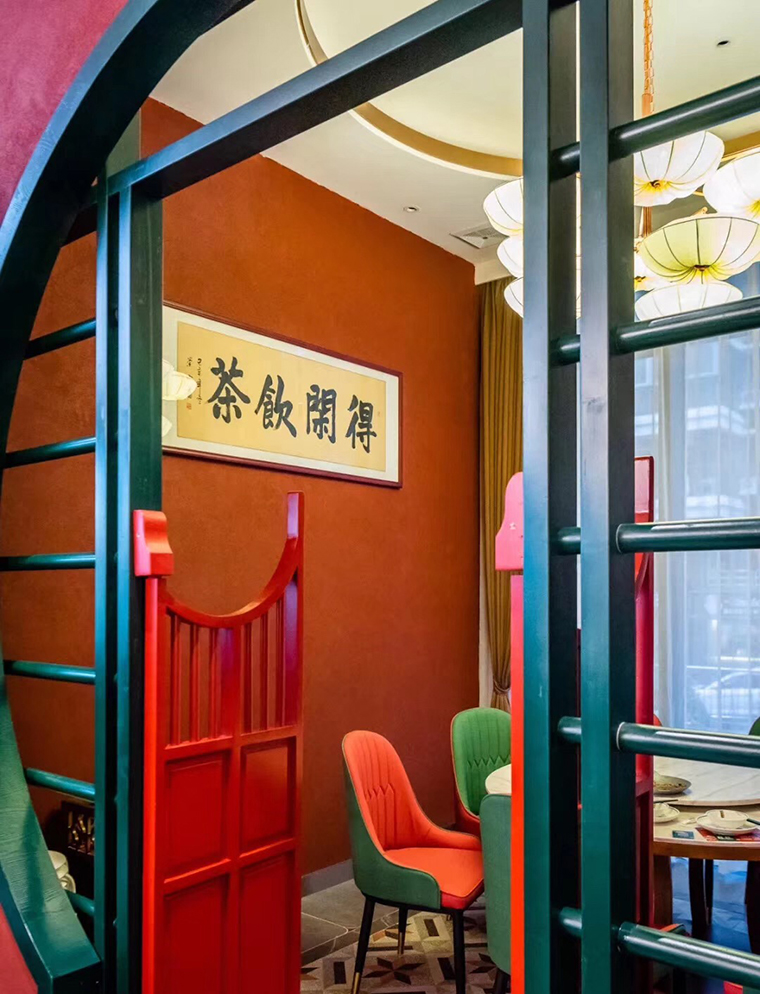 品深餐飲設(shè)計(jì)總結(jié)一句話形容悅得閑茶樓整體色彩搭配主題:紅配綠,奢華典雅有活力;大紅配大綠,富貴吉祥更添財(cái)氣。