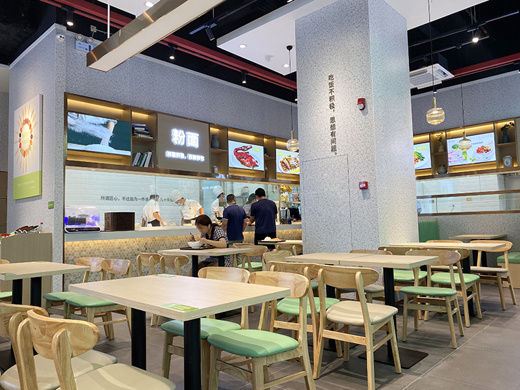 匯鈺二食堂在空間大面積使用水磨石飾面板,整體明亮清新,自然,富有文藝氣息,完美實(shí)現(xiàn)了消費(fèi)者對(duì)更高品質(zhì)、更純味道、更好生活的要求。
