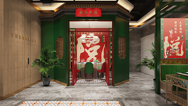 項目概述:悅得閑廣式點心茶樓是2019年品深餐飲全案策劃設計的品牌,從品牌命名到品牌VI形象設計,空間裝飾裝修設計,產品圖片拍攝,海報廣告設計,空間軟裝設計全部品深餐飲團隊系統化一體化解決。在2019年11月份首家店位于深圳龍崗上影影城,門店開業以來,獨特鮮明的形象,吸引力廣大食客的高度關注,經營業績持續穩定,營業額每月都過百萬。悅得閑廣式點心茶樓也先后開出了布吉南嶺店、福田馬成廣場店。隨著品牌的持續復制擴張,悅得閑茶樓需要在門店渠道擴大,不僅要布局在傳統800平米左右的街鋪,針對深圳眾多的商業綜合體,需要建立標準的商業綜合體門店,面積約在450平左右,餐位在180個左右,門店的營建周期控制在90天之內,每平方硬裝修造價不超過2500元。此次,品深餐飲設計負責的就是悅得閑品牌首家綜合商場450平標準店的裝飾裝修設計,門店位于坂田街道,吉華路佳華領匯廣場4樓。