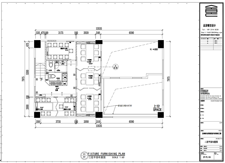 。施工圖中,各種節(jié)點(diǎn)大樣足夠清晰,精準(zhǔn)到一方桌椅,小到抽屜的一個(gè)把手,都要畫清楚,標(biāo)明白。同時(shí)施工還離不開設(shè)計(jì)師的現(xiàn)場(chǎng)交底、節(jié)點(diǎn)驗(yàn)收,項(xiàng)目經(jīng)理的規(guī)范化管理,主創(chuàng)設(shè)計(jì)師或者工程經(jīng)理的定期巡檢。與前期的品牌定位、文化策劃、形象設(shè)計(jì)同樣花費(fèi)時(shí)間的就是深化階段的施工制圖。對(duì)材料、工藝的熟知,對(duì)細(xì)節(jié)的精準(zhǔn)把握,對(duì)預(yù)算的合理劃分,最終將都呈現(xiàn)于一套餐飲空間詳細(xì)施工圖中。品牌餐飲門店的空間裝飾設(shè)計(jì)不僅是天馬行空,落在圖上的每一處,才是品深餐飲設(shè)計(jì)師數(shù)十年的經(jīng)驗(yàn)沉淀。在柜體如此眾多情況下,本次整個(gè)項(xiàng)目工程硬裝修造價(jià)我們控制在2600元/平方米,實(shí)現(xiàn)了很好的工程控制!