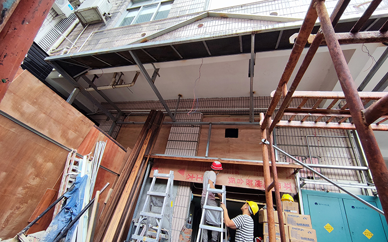 玉椿燒鳥居酒屋首店位于深圳的餐飲網(wǎng)紅高地——車公廟十畝地正對(duì)面。門店之前是一家中餐的后廚的全部空間及部分包間,其中一半的面積屬于上一家餐廳自己搭建的二層。空間結(jié)構(gòu)非常復(fù)雜,地面高地不平,尤其是搭建部分的1層,2層實(shí)際高度不到2.5米,心理感受很逼窄,這個(gè)場(chǎng)地極為考驗(yàn)品深項(xiàng)目團(tuán)隊(duì)中空間設(shè)計(jì)師的功力水平。
