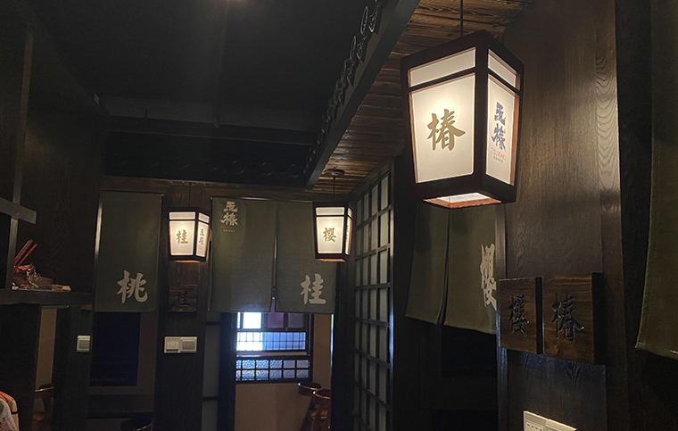 店內(nèi)的各種吊燈也是日式最經(jīng)典款式,在日本江戶時(shí)代是町家所用的,與品牌整個(gè)格調(diào)默默相融。吊燈上我們打上了日本六大名花:椿、櫻、桃、桂、梅、菊。既起到識(shí)別作用,又增強(qiáng)了品牌的文化底蘊(yùn)。