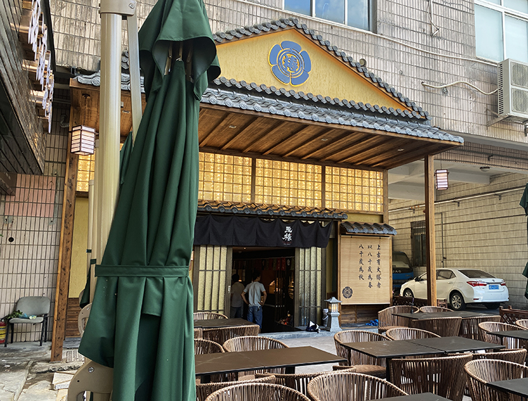 門口的日式推拉門、地?zé)簟⑶嗍濉⒋换洹⑻亢谏娜帐讲己煛⒄谏w燃?xì)獗硐潴w的竹制卷簾,整個(gè)門頭把日本京都特征表達(dá)地非常鮮明且形式經(jīng)典,識(shí)別度極高。